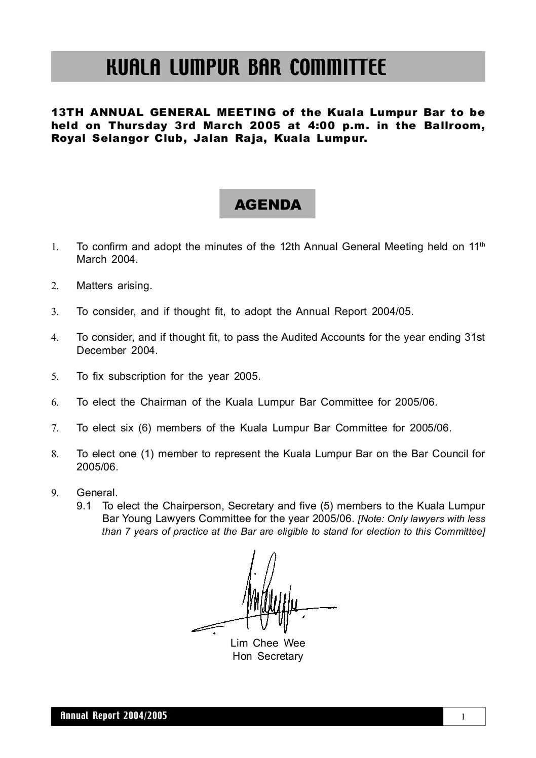 KL Bar Annual Report 2004-05